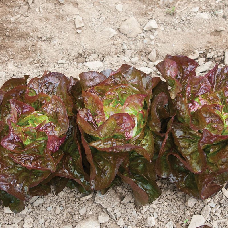 Stunning deep-red butterhead with glossy, ruffled leaves and a bright lime-green heart. Heat- and cold-tolerant, forms dense, heavy heads with a delicious sweet-buttery flavor that holds up beautifully in cool weather.