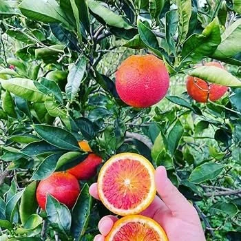 The deepest-colored, best-flavored blood orange. Juicy, medium-size fruit with vivid crimson-to-burgundy flesh and a sweet-tart taste laced with raspberry and berry notes. Virtually seedless. Ripens Dec–April.